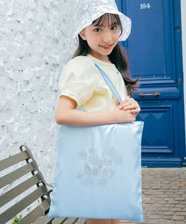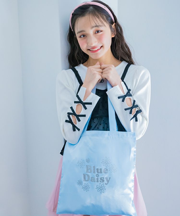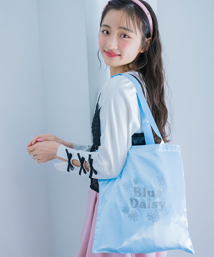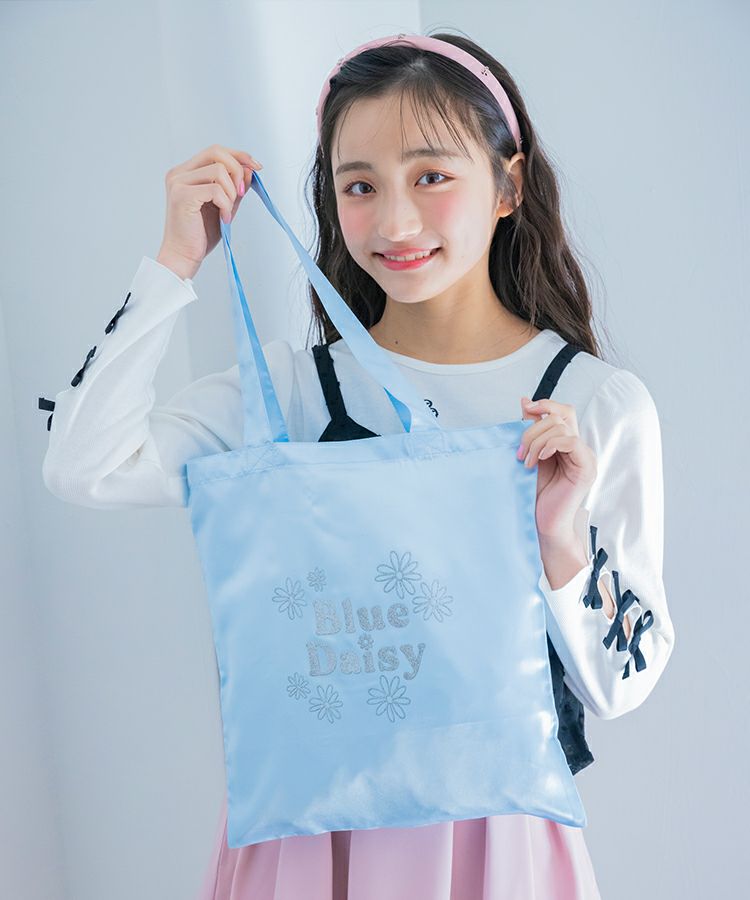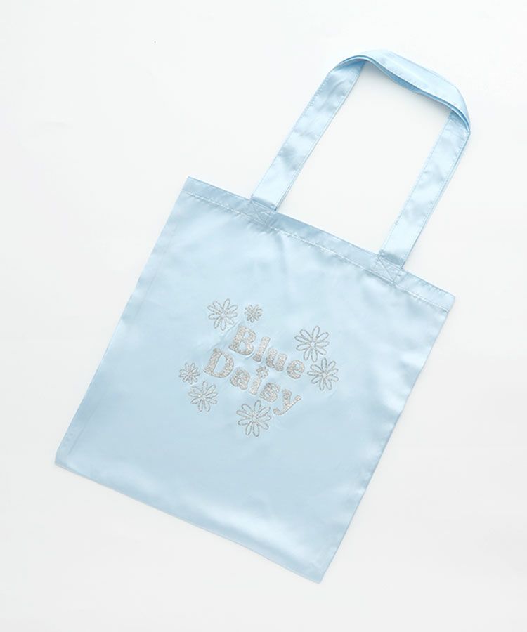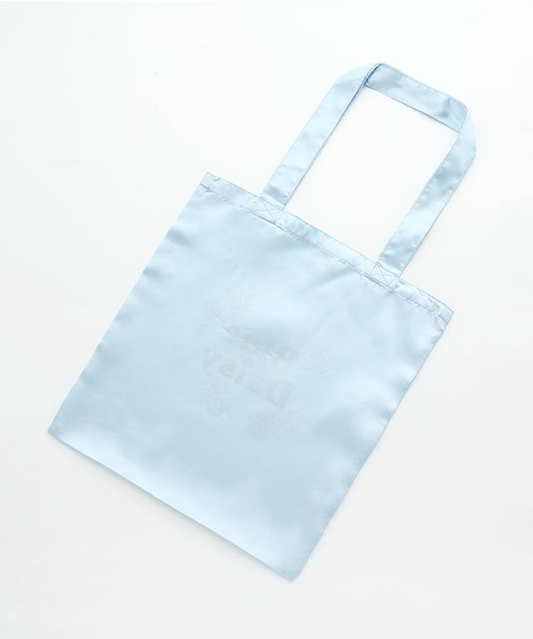 ■デザイン キラキラのブルーデイジーロゴがポイントのサテントートはおでかけのサブバッグやギフトのプラスワンにオススメ!軽くてたたみやすいのがうれしい♡