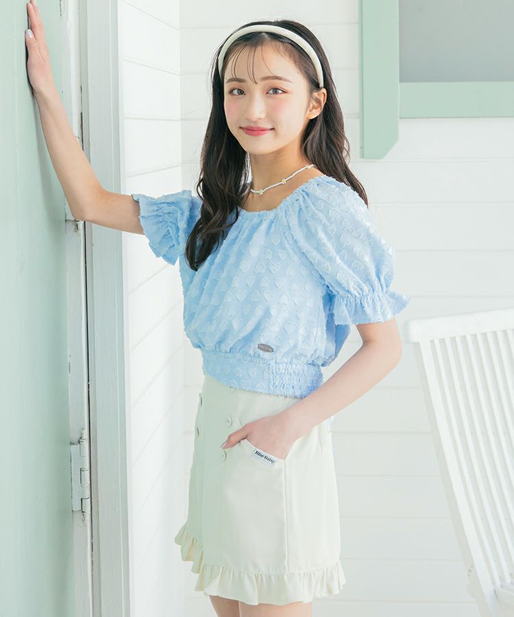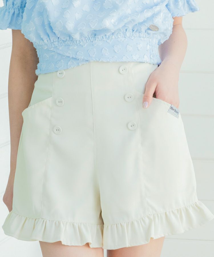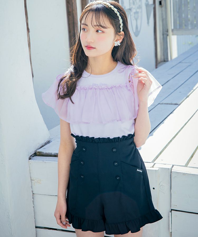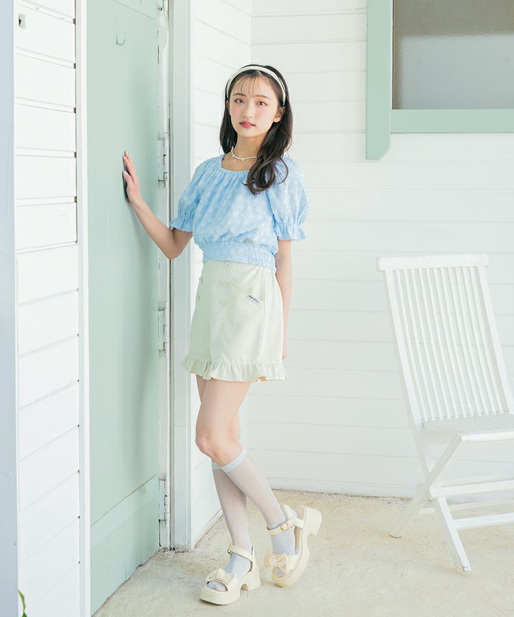 ■スタイリング ウエストのフリルも見せてより脚長に見せたいのでトップスはボトムにインするのがオススメです。