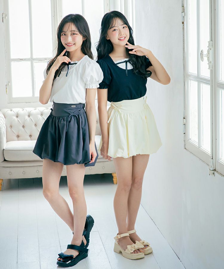 ■スタイリング プリーツスカートやチュールボトム、バルーンアイテムなどふんわり広がるボトムとの相性が特にばつぐんです。