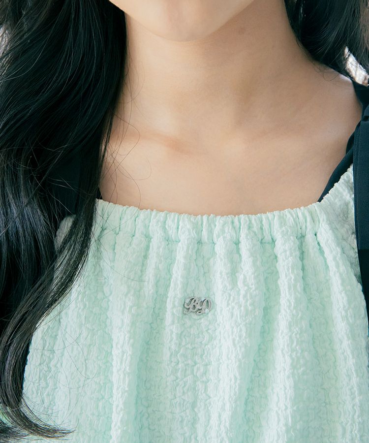 リボンの長さはボタンで調整ができるのでオフショルにするときは少し長めに設定すると肩にくいこまず着用できます。