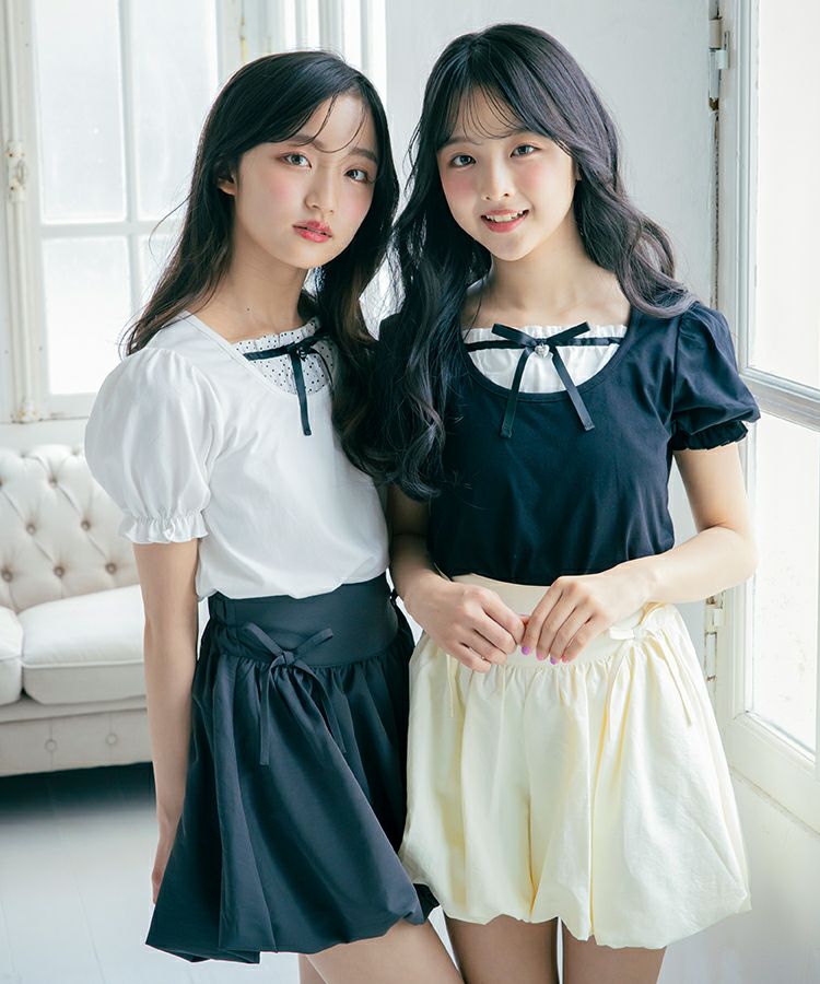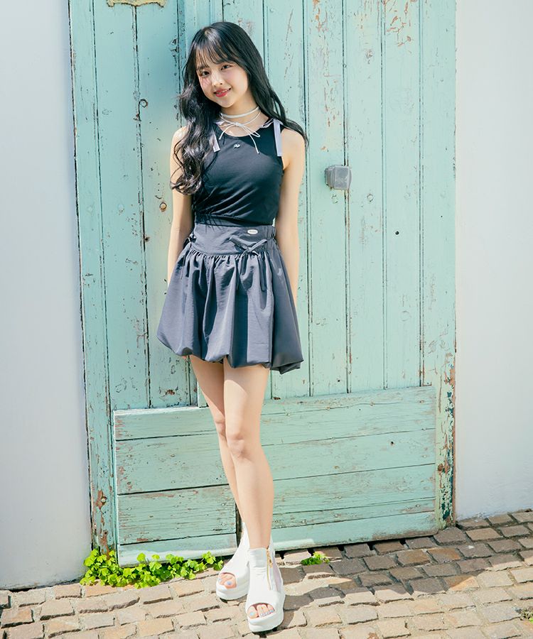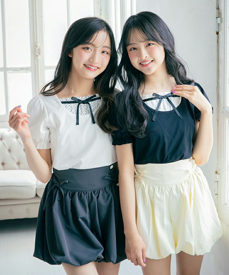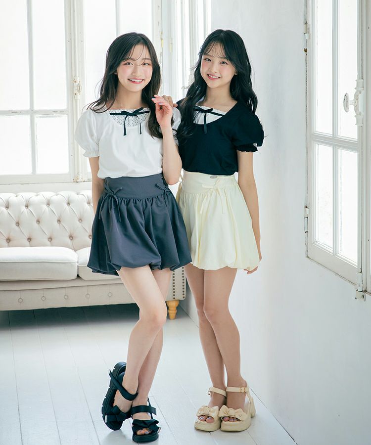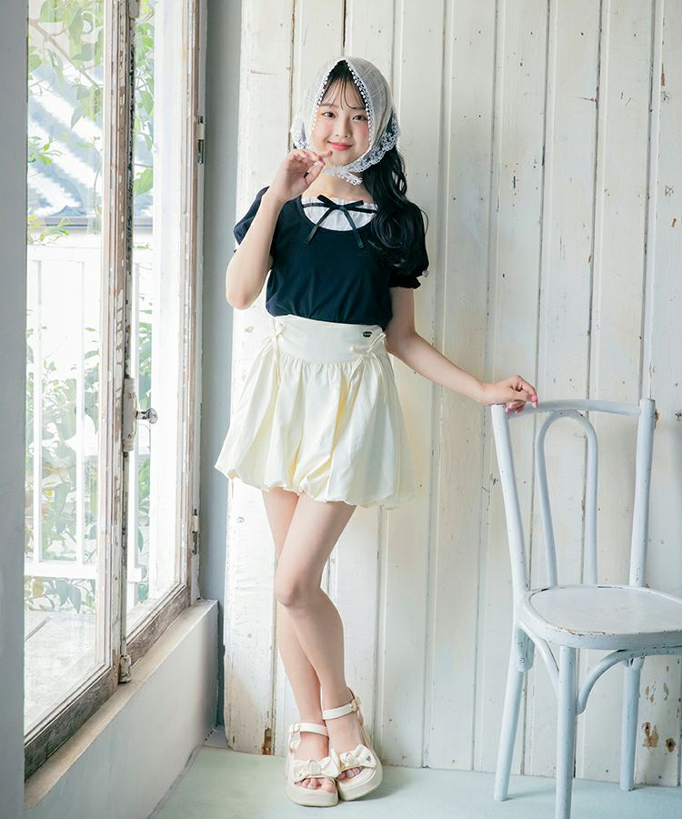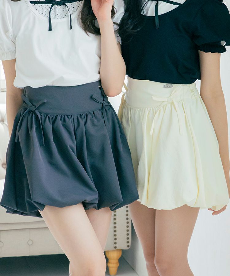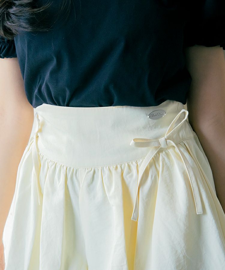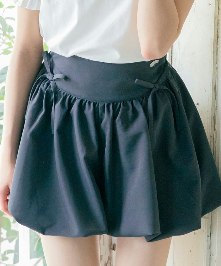 ■デザイン 人気のバブルヘムがキュロットタイプで登場です。ふんわり広がるシルエットでめりはりのあるスタイルに。短め丈でもキュロットタイプなので安心です。ウエストのフロント部分にはゴムが入っていないので見た目もすっきりごわつきません。