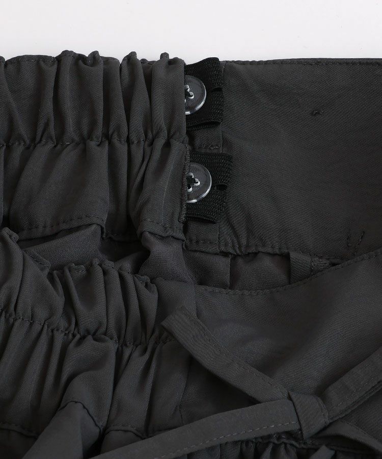 ■商品仕様 ウエストはゴム仕様なので楽に着脱ができます。 ウエストがゆるい時は左サイドからゴムを引っ張り出してボタンで留めて調整が可能なアジャスターゴム仕様です。 デザイン上サイドのポケットがつけておりませんが、隠しポケット(キュロット内ポケット)がついております。エチケットグッズ等を入れる際にご活用ください。