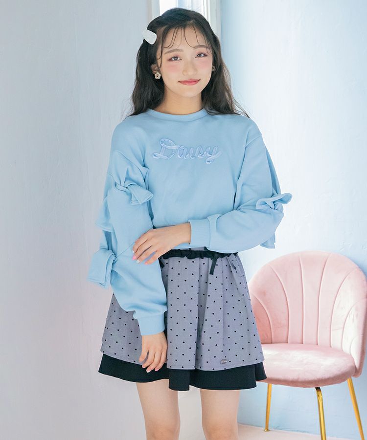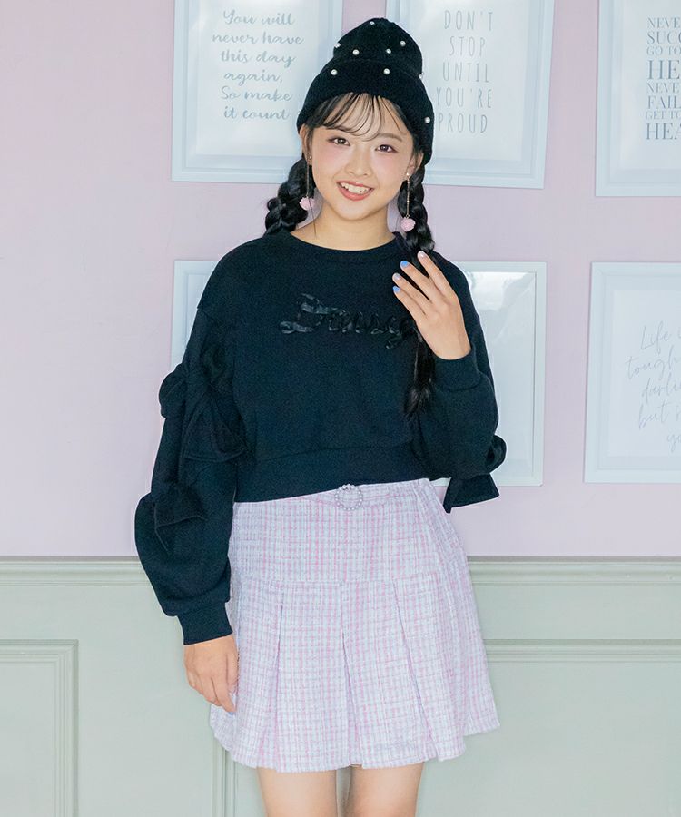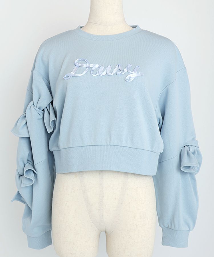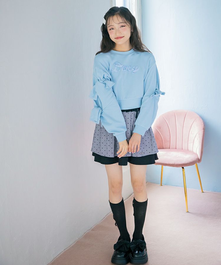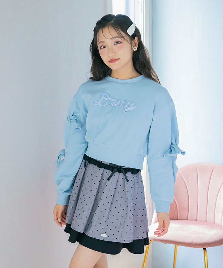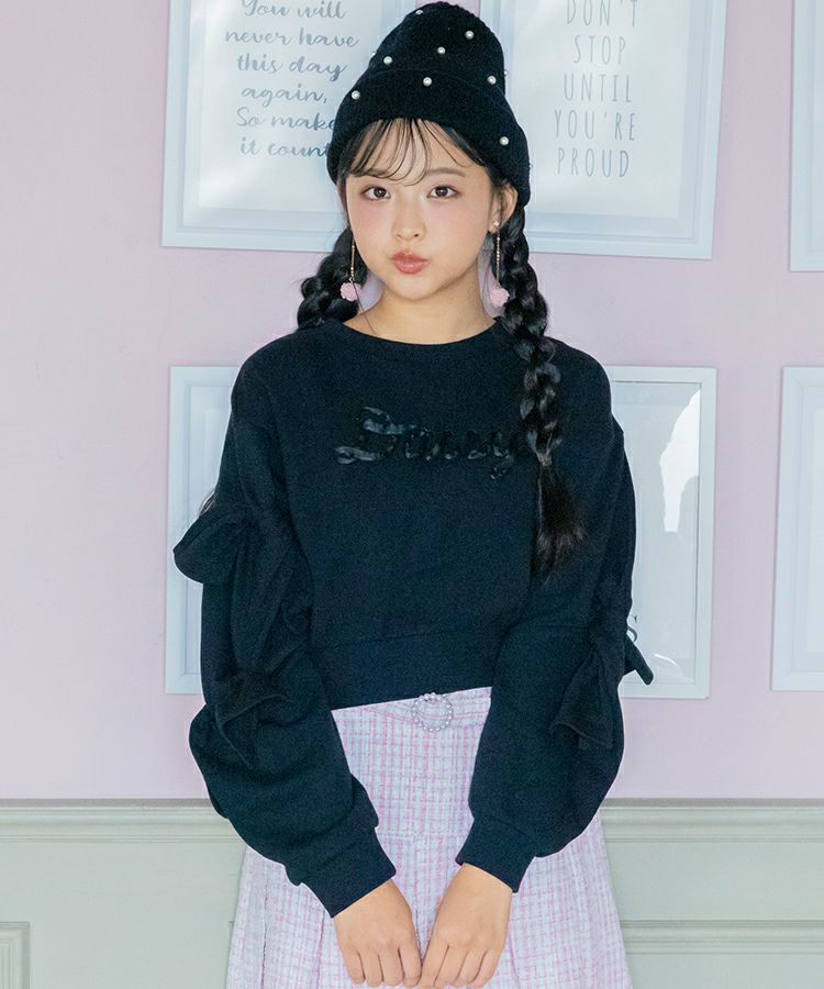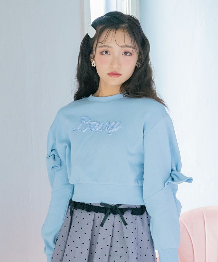 ■デザイン 袖にはアシンメトリーなリボンデザイン。軽く結ぶだけで簡単にリボンが完成します。お洗濯の際は外して干していただけるので乾きやすさも問題ありません。フロントにはリボンロゴ入り。他には無いこだわりのスウェットが着たい女の子におすすめです。ピリングができにくいコットン100%商品です。